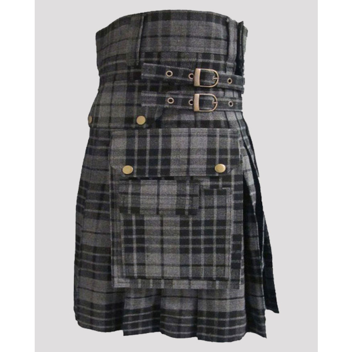 Perfect for festivals, clan gatherings, casual wear, outdoor activities, and modern street fashion, this grey tartan utility kilt offers freedom of movement while maintaining a strong and masculine appearance. The utility-style construction adds durability and function without losing the timeless tartan character.