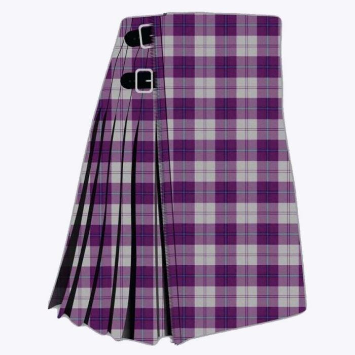 Featuring a striking tartan pattern built around rich purple tones with complementary darker accents, this kilt blends classic tradition with a contemporary edge. Traditional pleating helps it drape cleanly and move naturally, so you can walk, sit, or dance comfortably without losing the kilt’s structured silhouette. Adjustable buckles and straps allow for a secure, personalized fit at the waist.